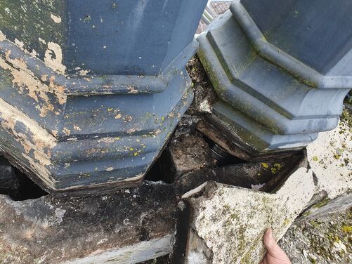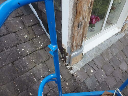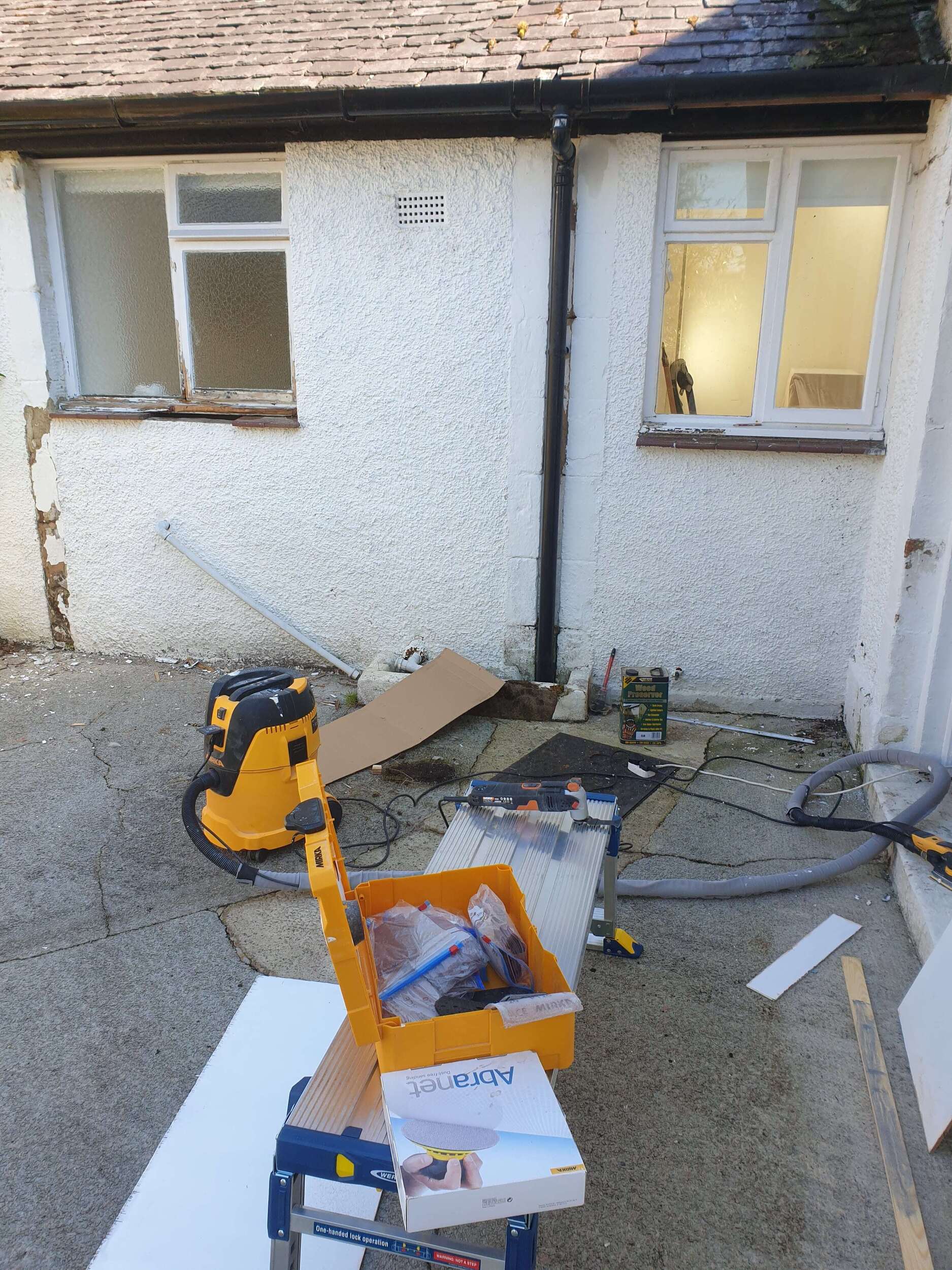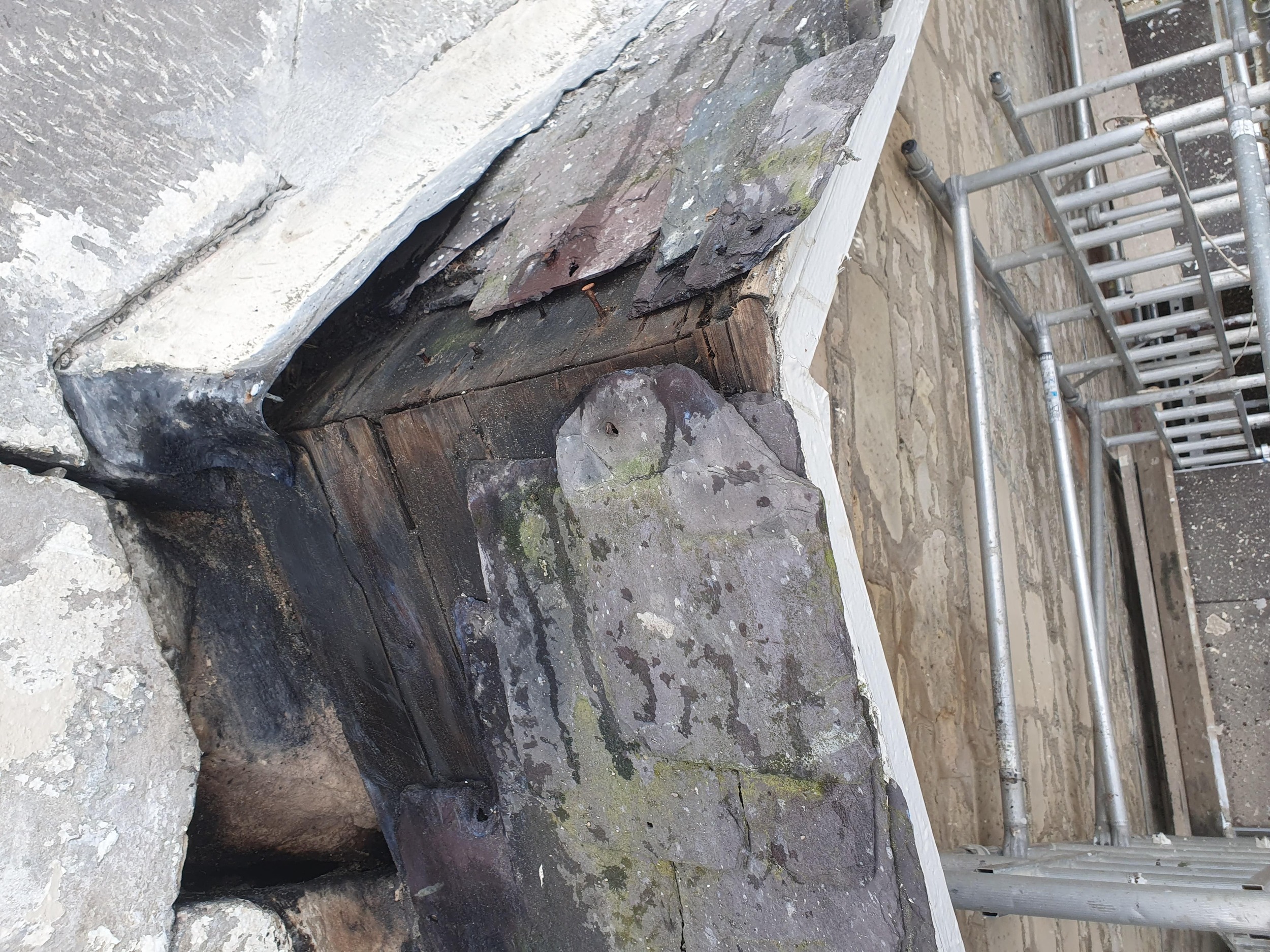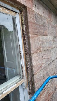 Substrate thoroughly washed down, removing soot, grime and alga growth prior to being treated with a fungicidal solution or wood preserver.